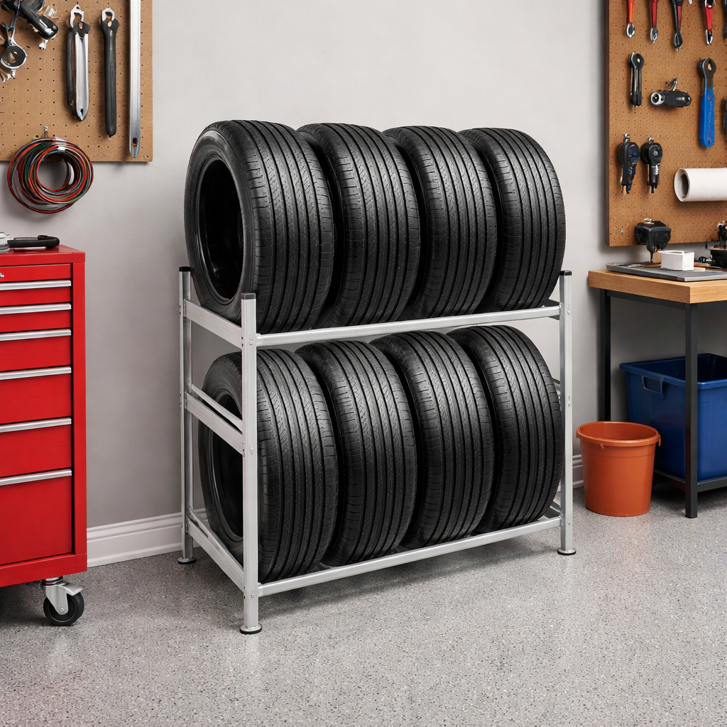 Sorgen Sie in Ihrer Garage für Ordnung und gewinnen Sie mehr Platz mit einem praktischen Reifenregal. Das Modell mit einer Breite von 1060 mm und einer Höhe von 1100 mm bietet ausreichend Platz für bis zu 8 Reifen, sodass diese übersichtlich gelagert und jederzeit für die nächste Saison bereit sind.