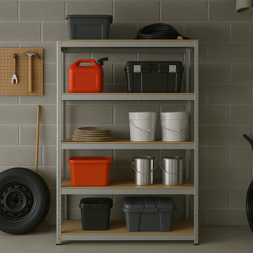 Suchen Sie nach einer zuverlässigen und dauerhaften Lösung zur Organisation Ihres Raums? Dann ist unser 5-Fach-Regal mit einer Tragkraft von bis zu 175 kg pro Fachboden genau das Richtige für Sie! Es ist die ideale Wahl für Garagen, Lagerhallen, Werkstätten, Geschäfte und Wohnungen, wo Sie seine robuste Konstruktion und die praktische schraubenlose Montage zu schätzen wissen, dank der Sie es schnell und einfach ohne Werkzeug zusammenbauen können. Jeder der fünf stabilen Böden aus hochwertiger HDF-Platte ist mit bis zu 175 kg belastbar und sorgt so für die sichere Lagerung auch schwererer Gegenstände. Die verzinkte Metallkonstruktion ist korrosionsbeständig, sodass Ihnen das Gestell viele Jahre lang zuverlässige Dienste leisten wird. Dank seines universellen Designs eignet es sich nicht nur für Privathaushalte, sondern auch für Archive, Lager oder Geschäfte. Neben der hohen Qualität wird Sie auch der günstige Preis freuen.