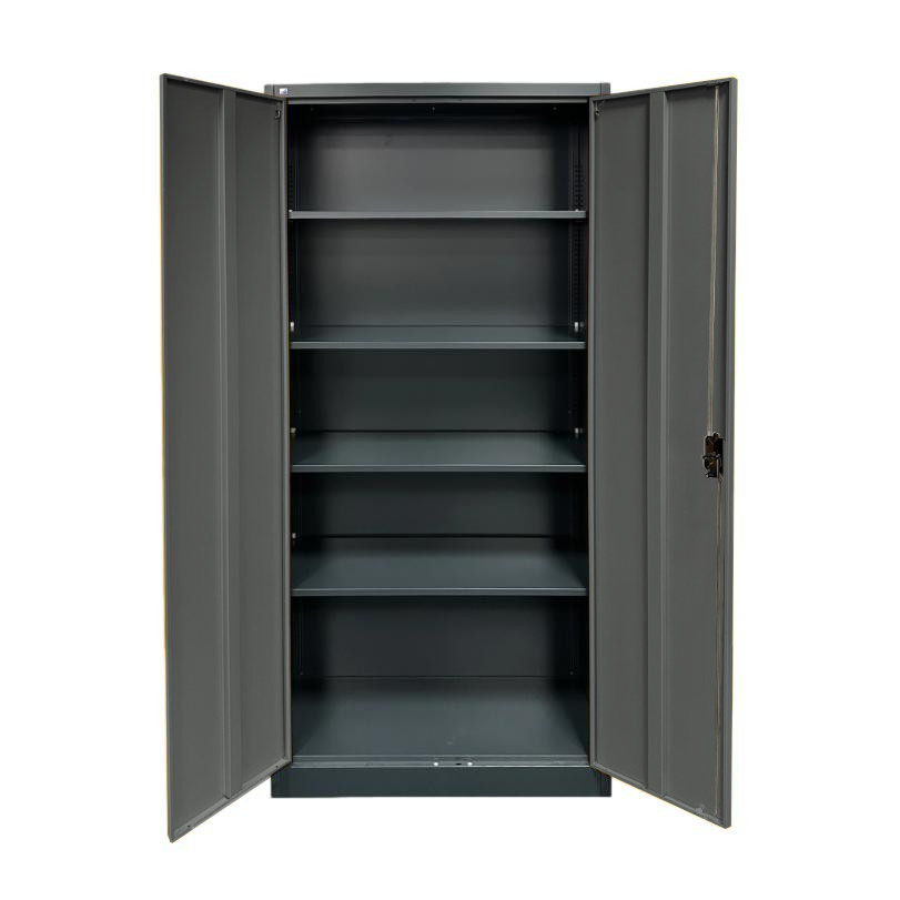 Die Grundlage bildet eine robuste Konstruktion aus hochwertigem Stahlblech 1. Klasse, die eine hohe Stabilität und lange Lebensdauer auch bei täglicher intensiver Nutzung gewährleistet. Die Pulverbeschichtung im Farbton RAL 7016 (Anthrazit) schützt den Schrank vor Beschädigungen und Abnutzung und verleiht ihm gleichzeitig ein elegantes Erscheinungsbild.