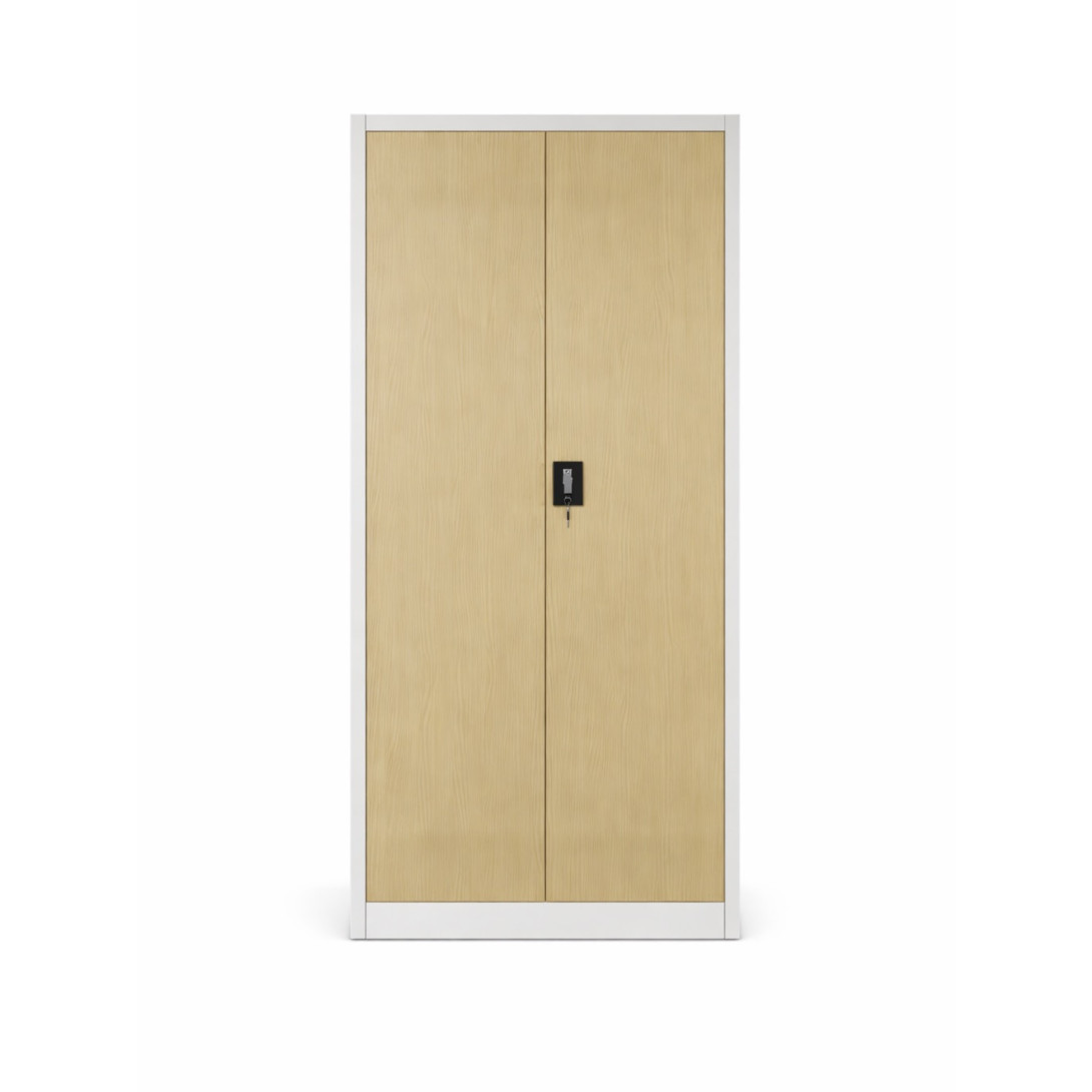 Der Büroschrank #26 STRONGO WOOD MAXI LW FLAT wurde für Anwender entwickelt, die eine zuverlässige Aufbewahrungslösung mit Fokus auf Stabilität und ansprechendes Design suchen. Die robuste Konstruktion aus hochwertigem Stahlblech 1. Klasse gewährleistet eine hohe Standfestigkeit und eignet sich ideal für den täglichen Einsatz in Büros, Unternehmen, Schulen sowie Verwaltungsräumen. Die Fronttüren in heller Holzoptik wirken elegant und natürlich zugleich und ermöglichen eine harmonische Integration in moderne wie auch klassische Innenräume.