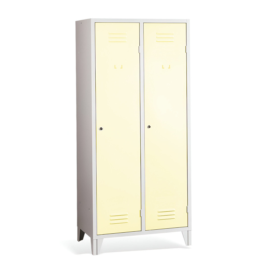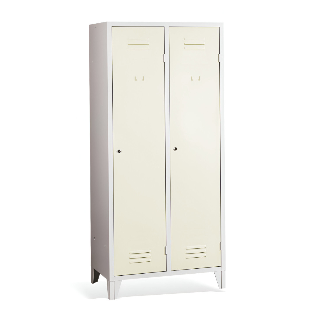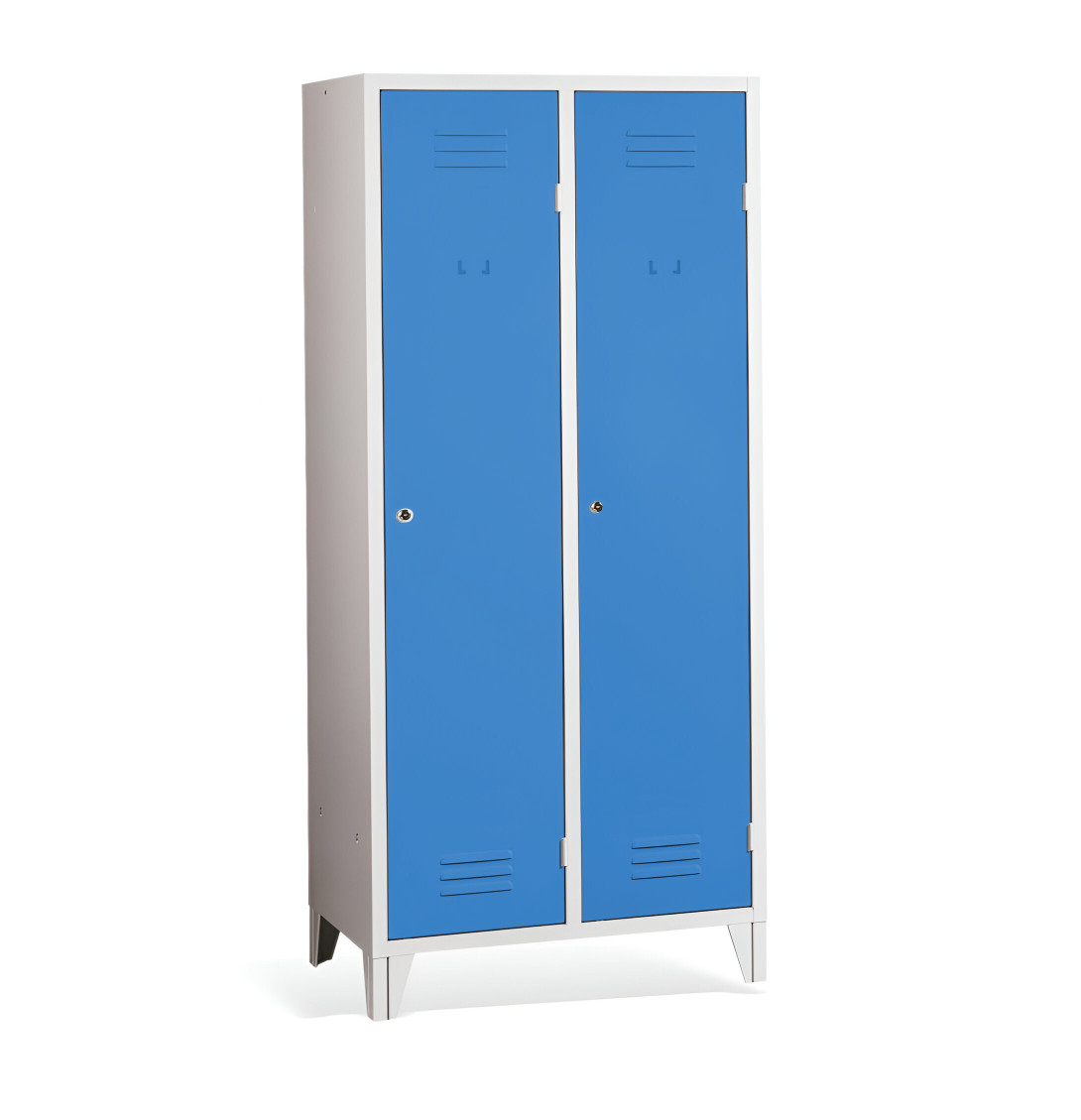 Der 2-türige Spind mit Trennwand und Füßen #26 MAXI 2 ECONOMY F ist eine preisgünstige Lösung für Schulen, Unternehmen und andere Institutionen. Es ist die perfekte Wahl für Umkleideräume, da es ausreichend Platz für Ihre Mäntel, Schuhe und persönlichen Gegenstände bietet. Der Schrank enthält eine Trennwand, die das Innere des Schranks in 2 Fächer unterteilt. Dadurch eignet sich dieser Garderobeschrank ideal zur Trennung von Arbeits- und Zivilkleidung trennen, was in vielen Arbeitsplätzen erforderlich ist.