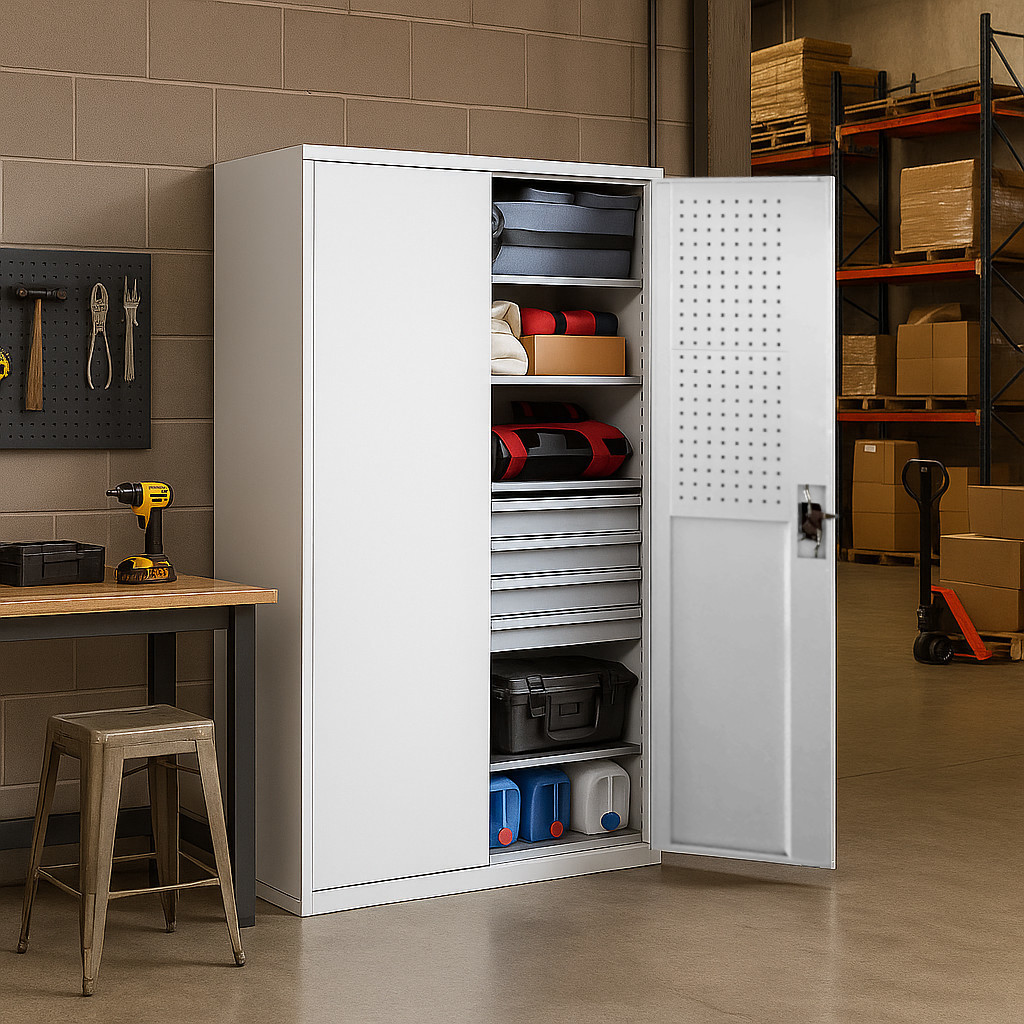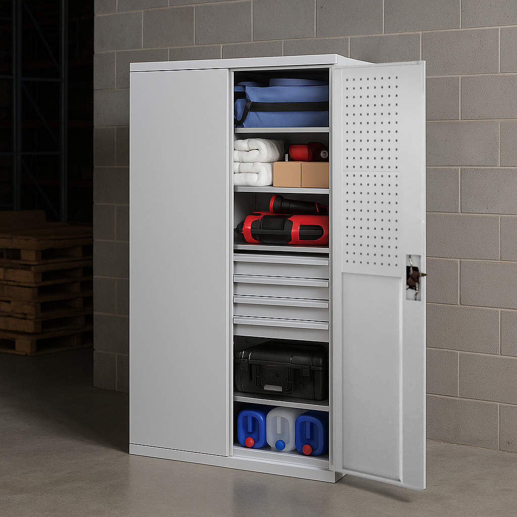 Werkzeugschrank mit hoher Tragfähigkeit, 4 Fachböden + 4 Schubladen
