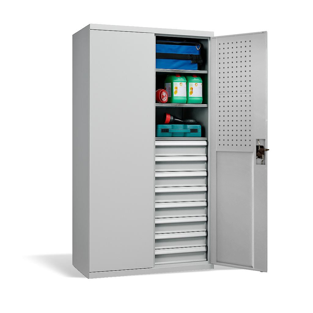 Werkzeugschrank mit hoher Tragfähigkeit, 4 Fachböden + 8 Schubladen