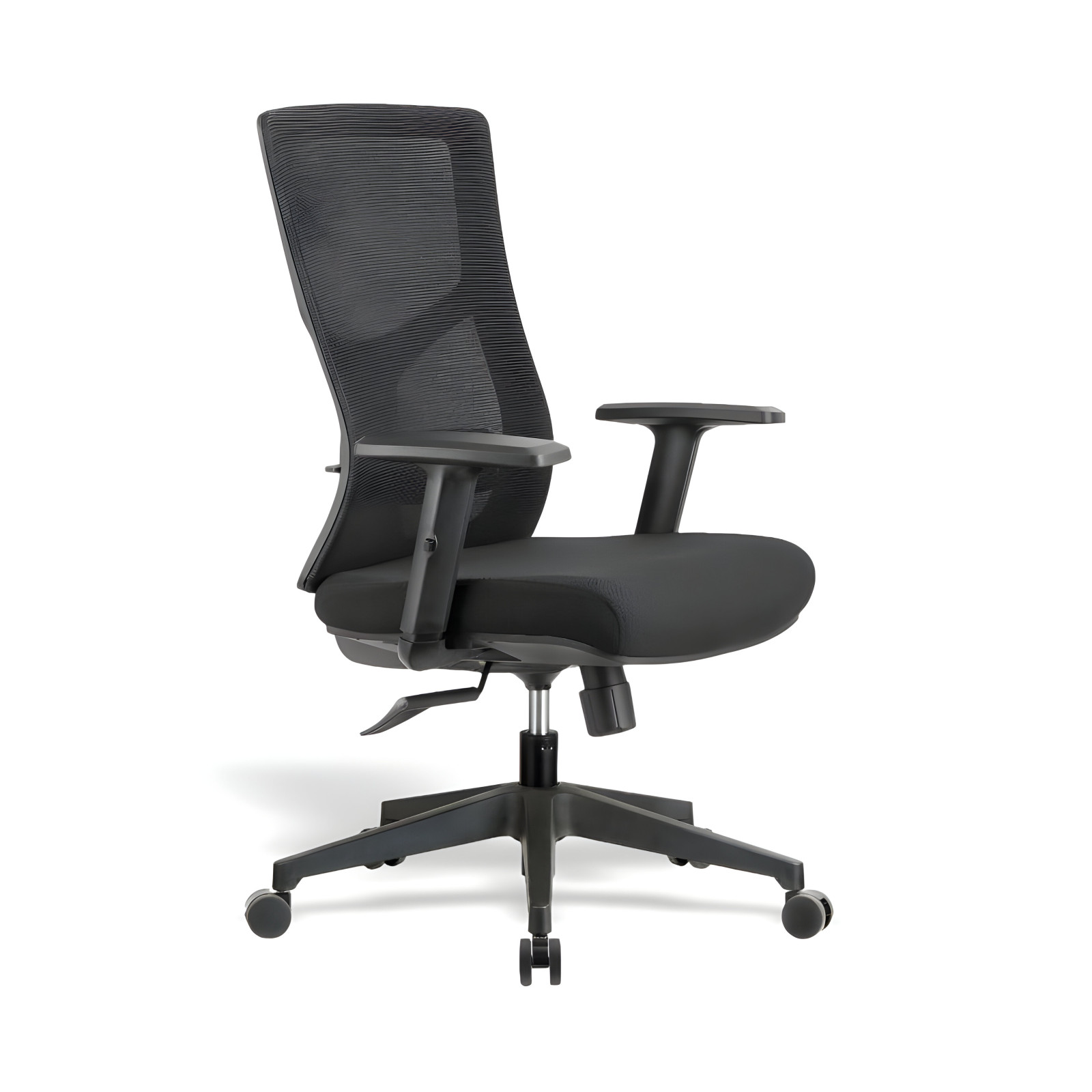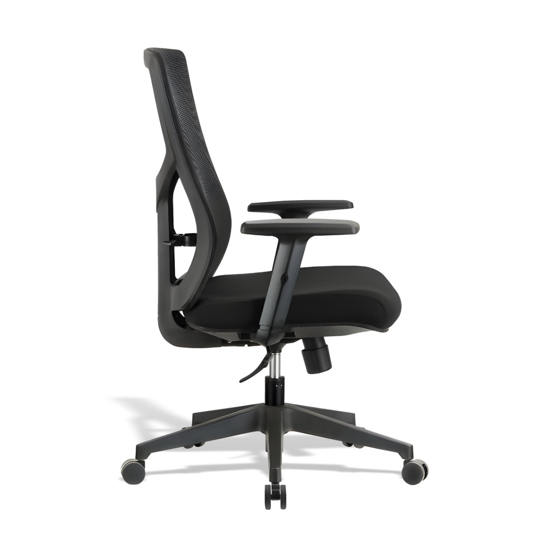 - Die Sitzfläche in schwarzer Ausführung wirkt professionell und lässt sich leicht mit unterschiedlicher Büroausstattung kombinieren.