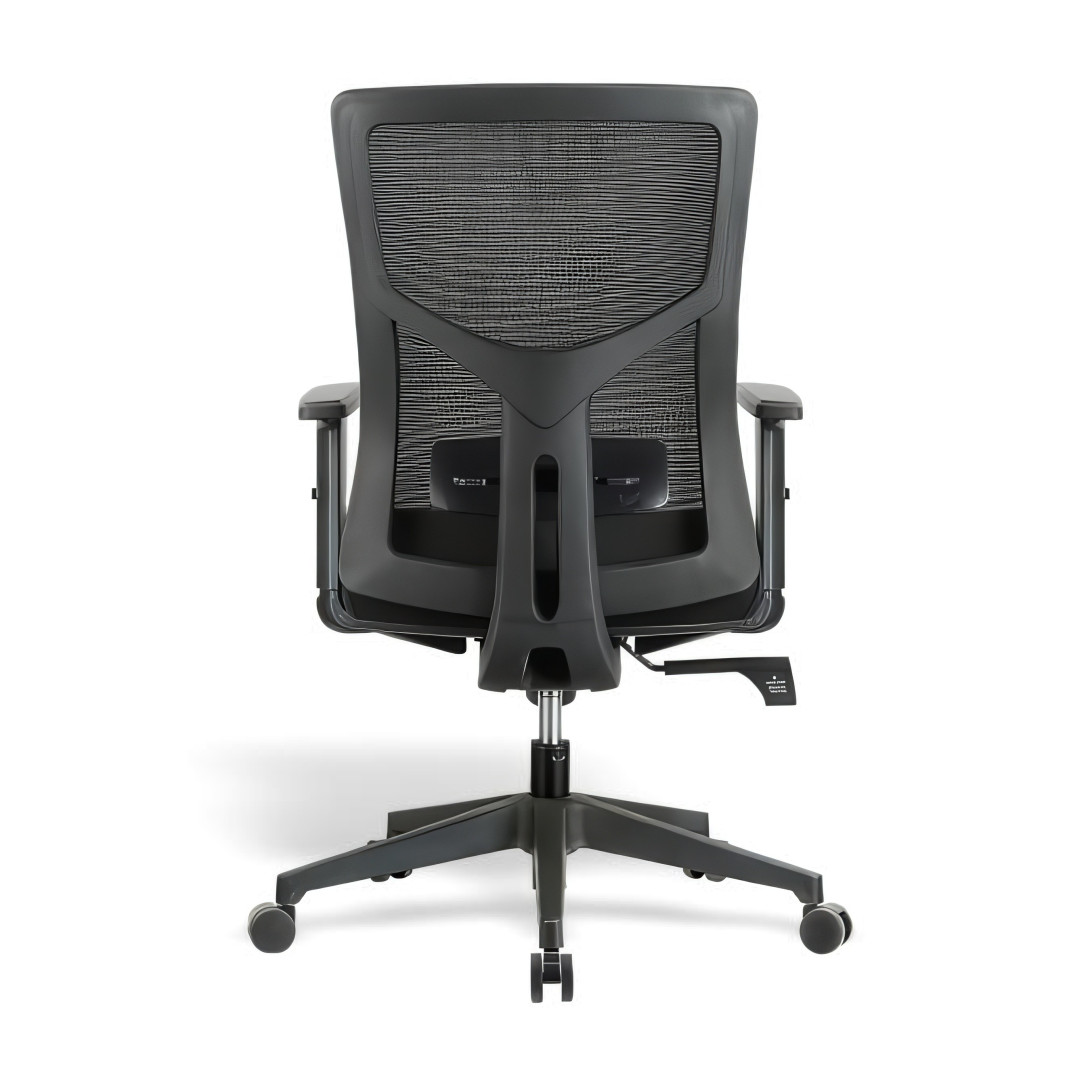 - Die Rückenlehne aus atmungsaktivem Mesh-Material unterstützt die Luftzirkulation und erhöht dadurch den Komfort während der Arbeit.