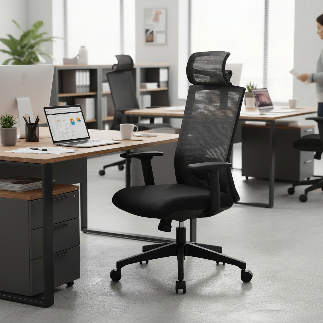 Bürostuhl mit Netzrückenlehne und Kopfstütze