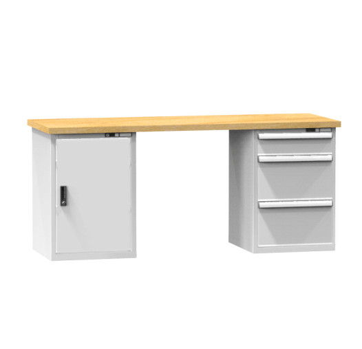 Arbeitstisch mit Schrank und drei Schubladen, 2000 mm